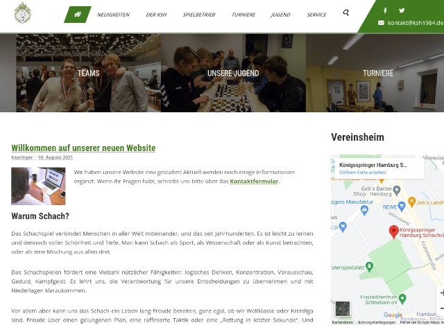 Mit der von Elias Pfann erstellten Website sind wir sehr zufrieden. Sie ist sehr leicht zu pflegen und hat alle Funktionen, die wir brauchen. Besonders nett ist das Tool zum Einbetten von Schachdiagrammen und -partien. Die Zusammenarbeit mit Elias war in jeder Phase sehr angenehm.